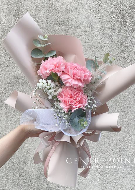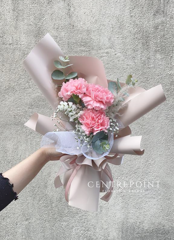 Flower : 3 stalk of fresh carnations with some fillers