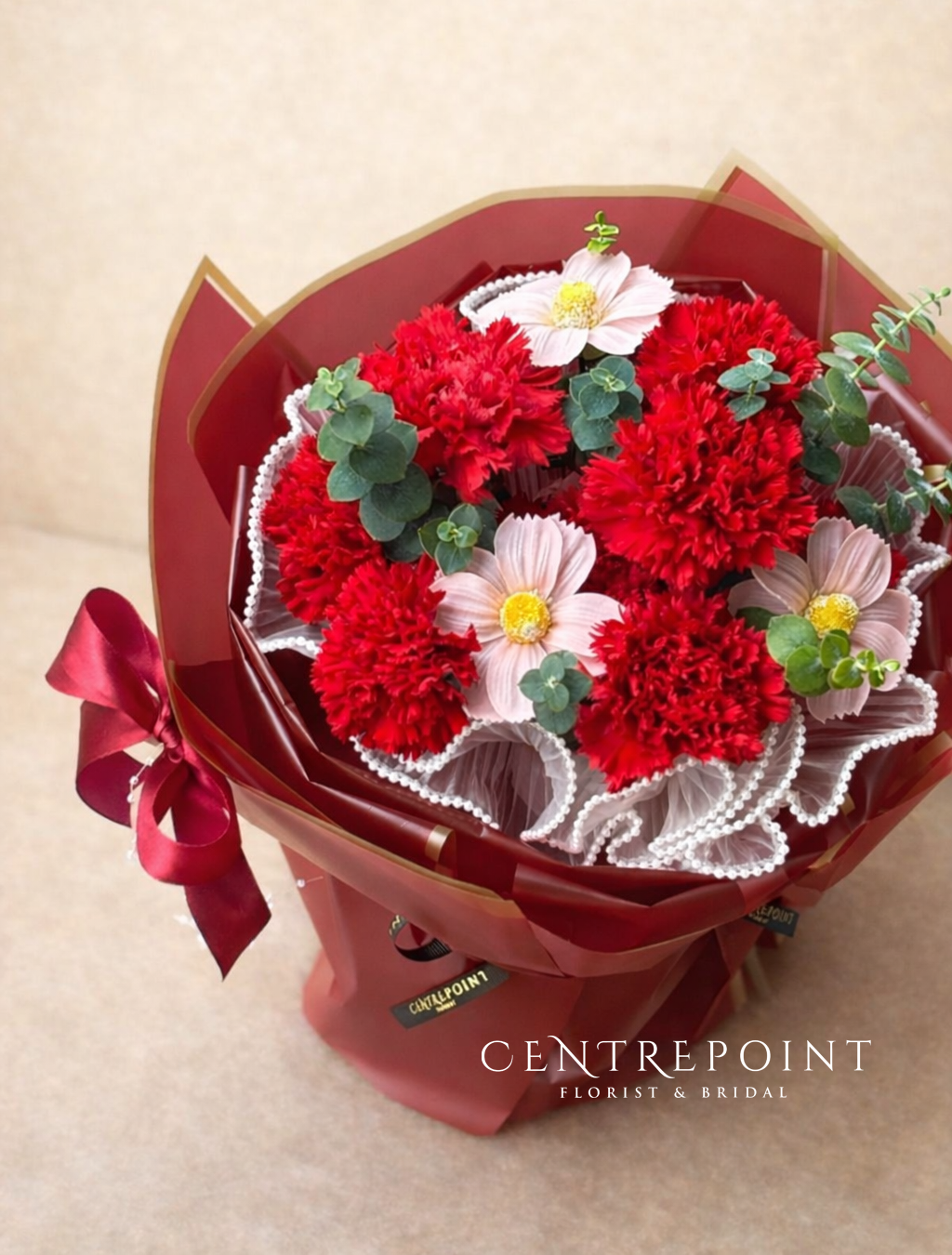 Flower : 9 stalks of carnations with 3 stalk of soap flower with special packing