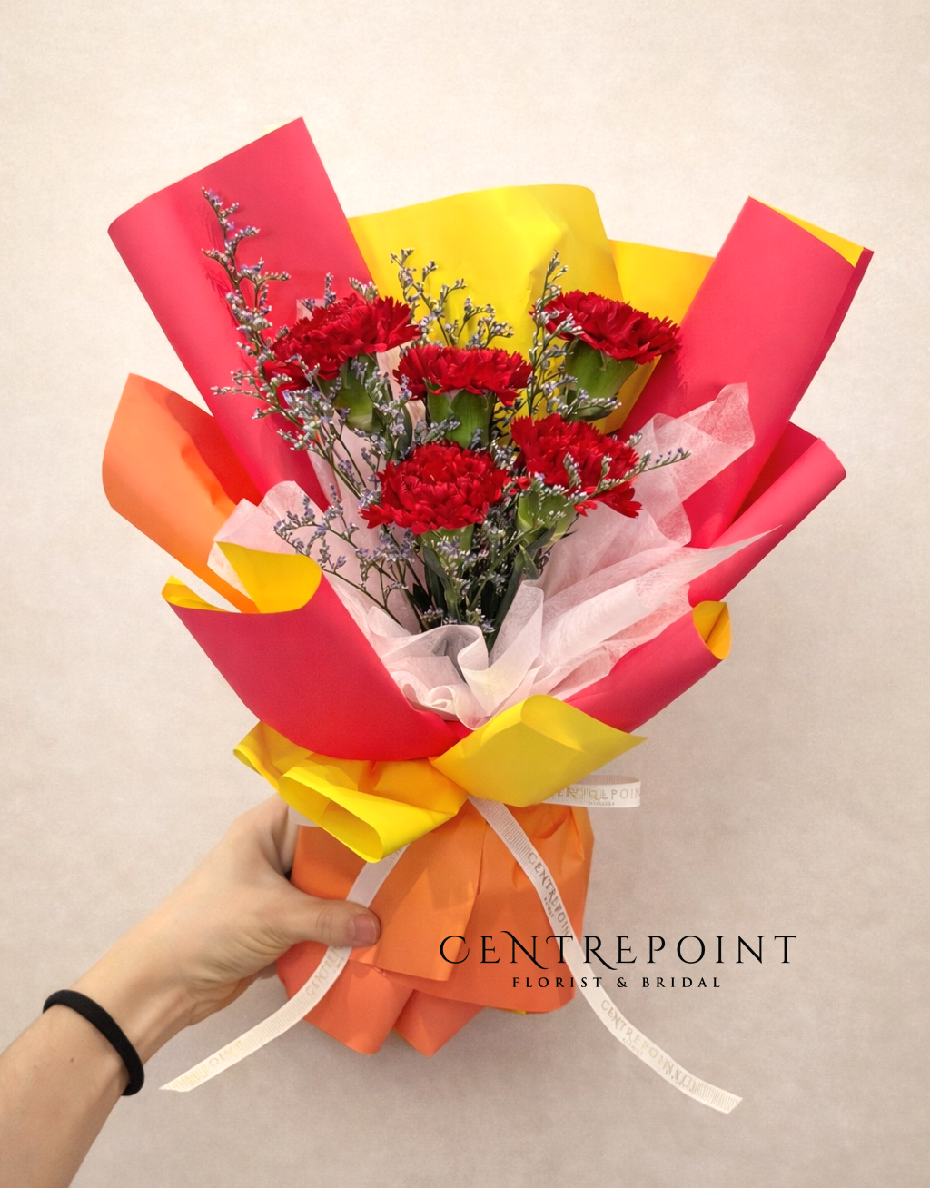Flower : 5 stalk of fresh red carnations
