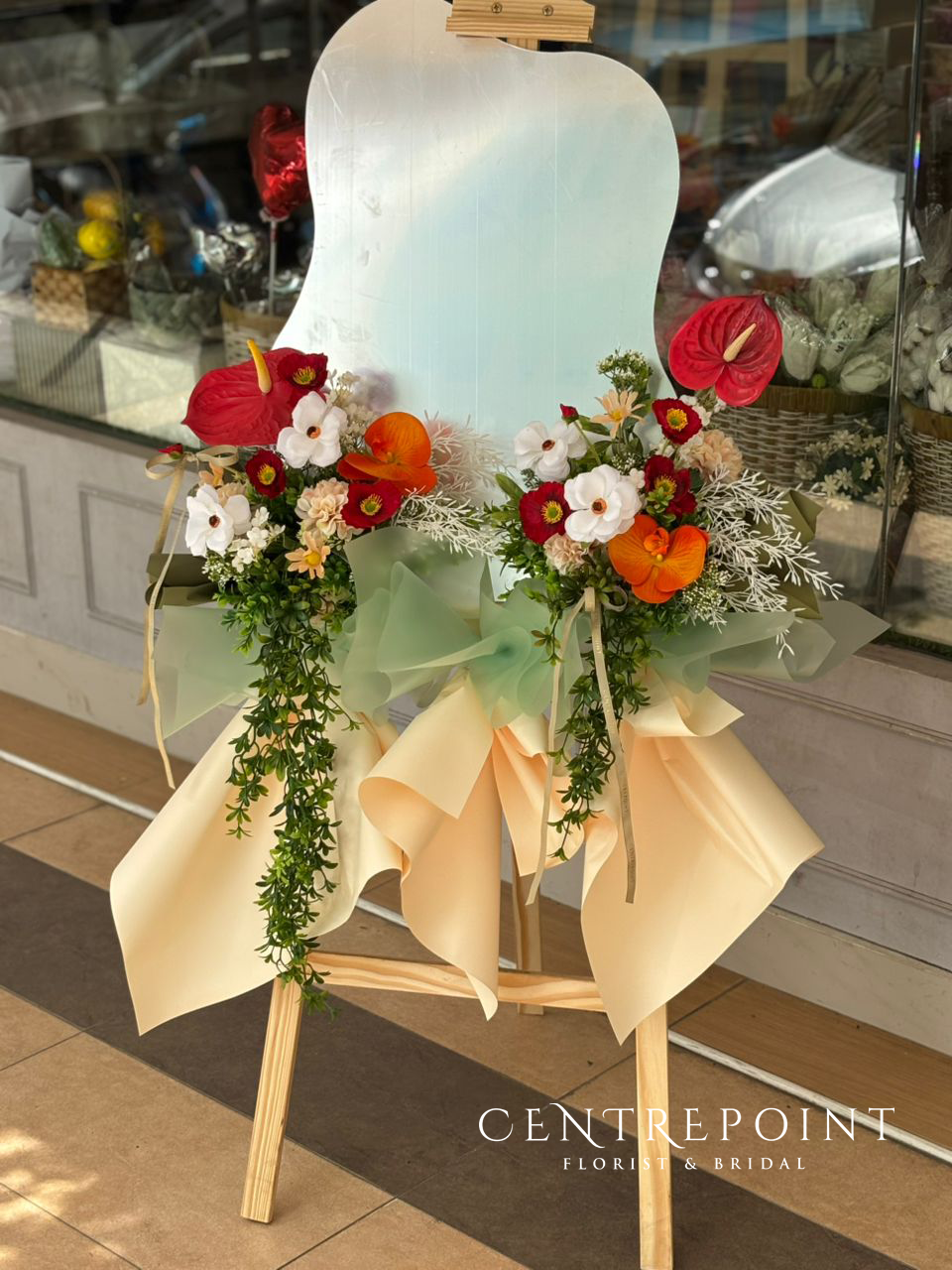 One layer congratulatory flower stand with special confetti balloon for any grand openings or happy ceremonies. Send your blessings and best wishes to the ones you care.