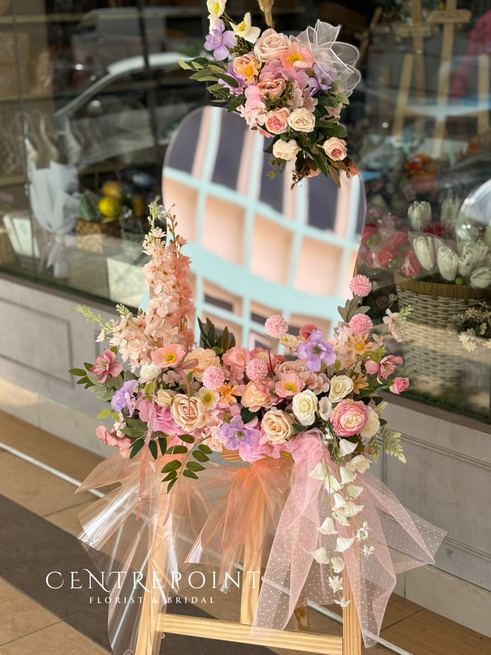 One layer congratulatory flower stand with special confetti balloon for any grand openings or happy ceremonies. Send your blessings and best wishes to the ones you care.